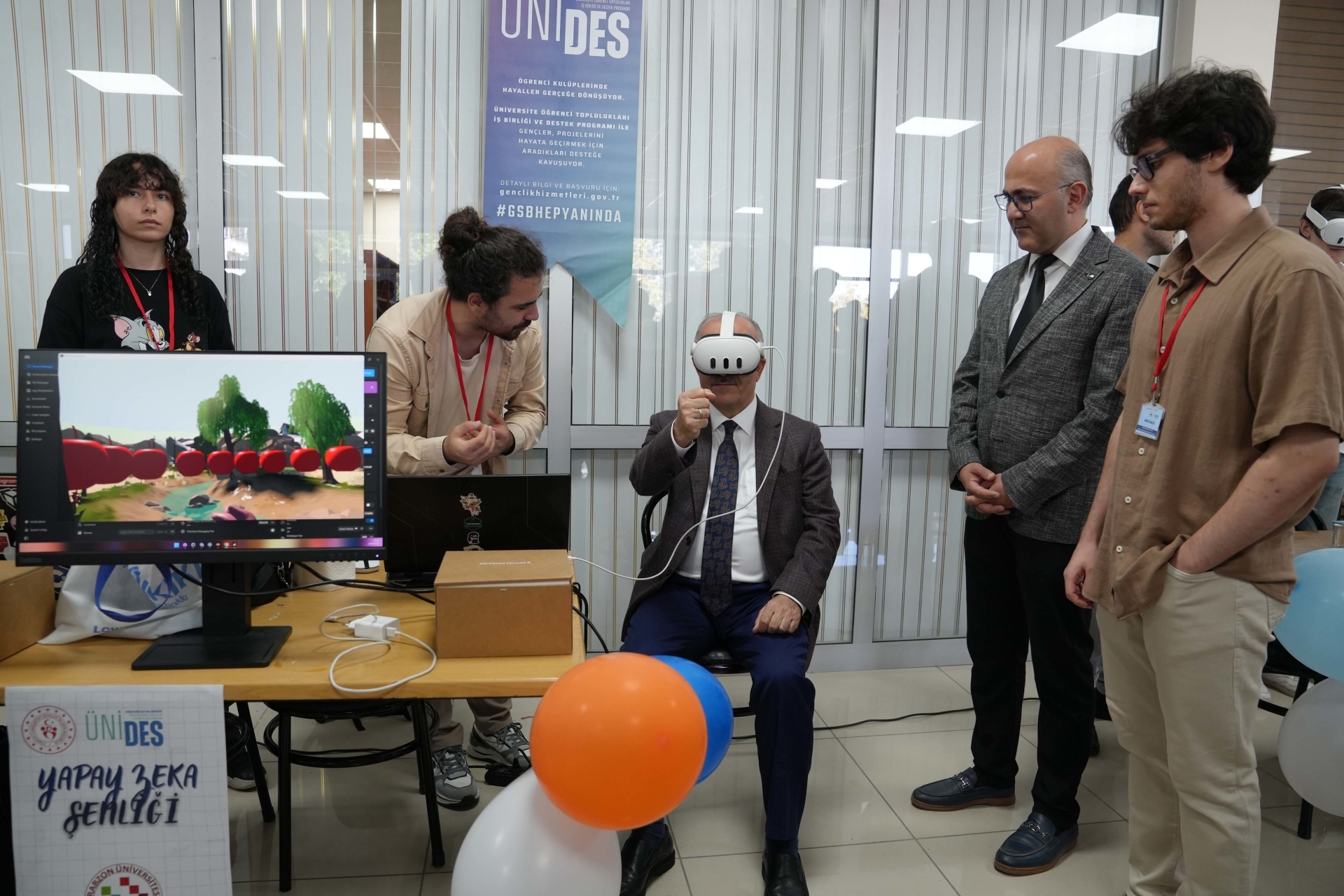 Üniversite Öğrenci Toplulukları İş Birliği ve Destek Programı (UNİDES) projesi kapsamında Üniversitemizde düzenlenen 2025 Yapay Zeka Şenliği etkinliğinde yapay zeka destekli ürünler teknoloji severlerle buluştu. Merkez Fatih Kampüsümüz Mahmut Goloğlu Kültür Merkezi fuaye alanında açılan stantlar teknolojiye ilgi duyan ziyaretçilerden büyük ilgi gördü.